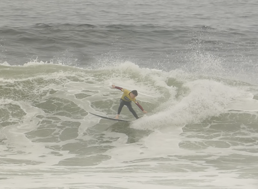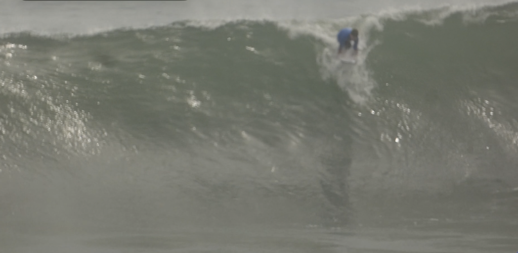 Joel paddled out in the huge surf and gave it a proper shot catching two of the biggest waves of his life. Even the live streamed commentator saying there is a young flying Scotsman – as Joel air dropped a wave three times his height to a crumpled conclusion. Unfortunately his score reflected his inexperience and he failed to qualify but he had survived moving into the U18 Repocharge.